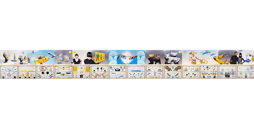 Oil paint on aluminum and found objects